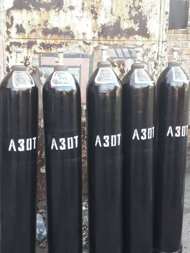 Призначений для зберігання й транспортування Азота. Балон для азоту комплектується вентилем ВК-94, кільцем горловини, запобіжним (нові балони) ковпаком, опорним черевиком. Балон забарвлюється емальовою фарбою чорного кольору та маркується написом "Азот".Можливо замовити в нас балон під азот свіжофарбованим, який матиме вигляд нового балона. Усі балони на складі атестовані, у чудовому технічному стані, випробувані за тиском.