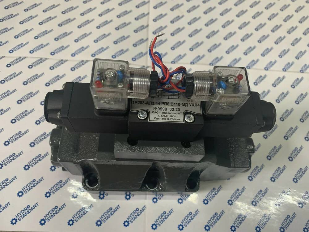 Гидрораспределители 1Р203АЛ1-44 (ТУ2-053-1846-87) золотниковые четырехлинейные с двухсторонним электрогидравлическим управлением , с условным проходом 20 мм, предназначены для управления потоком рабочей жидкости исполнительных органов в гидравлических системах.