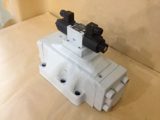 Переключение положения золотника происходит с помощью управляющего элемента – пилота. В трехпозиционных распределителях с электрогидравлическим управлением 1Р323 устанавливается пилот ВЕ6.34. Работают от сети постоянного или переменного тока с напряжением 12В, 24В, 110В, 220В, .