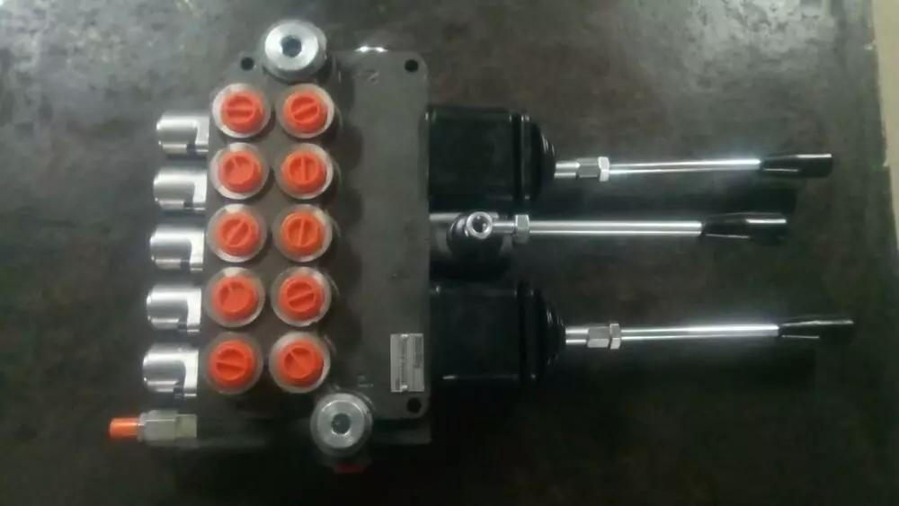 Гидрораспределитель 5Р40 пятисекционный моноблочный импортный производства ведущих турецких завода гидравлики Hidros, GMS Hydraulics с 4 координатным джойстиком с пропускной способностью от 40-70 л/мин. Возможность управления 2 секциями одним джойстиком : Вверх, вниз - управление 1 секцией ; вправо, влево - управление 2 секцией.В базовой комплектации имеются встроенный клапан давления от 0 до 320 Бар, пружинный возврат ручки в нейтральное положение, как дополнительная опция возможна установка фиксации ручки и плавающего положения, электроуправление, гидроуправление, пневмоуправление, троссиковое управление и механический джойстик 4-х координатный для удобства использования. Резьба 1/2` (управляющие каналы) ― 3/4`(подача и слив)