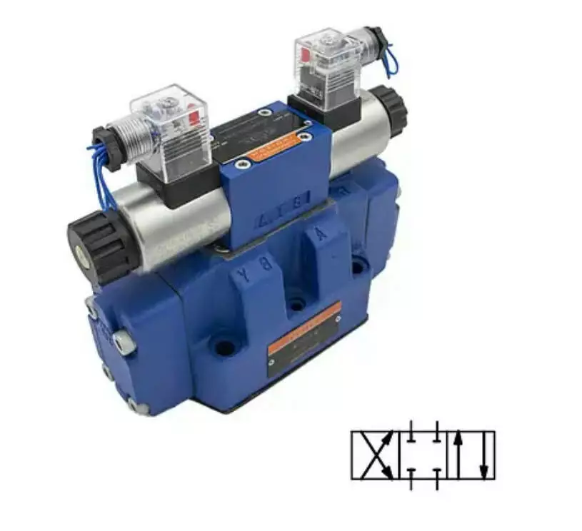 H4WEH16E-6XEG24N9Z5L представляет собой 4-х линейный электромагнитный гидравлический распределитель золотникового типа с пилотным управлением, который используется для управления пуском, остановкой и направлением потока рабочей жидкости. Он имеет две катушки напряжением 24 В постоянного тока, оснащен пилотом с пружинным возвратом, аварийной кнопкой и квадратным разъемом со светодиодом. Без клапанов предварительной нагрузки и разгрузки с внешними питанием и сливом. Имеет литой оксидированный корпус. Работает по схеме E.