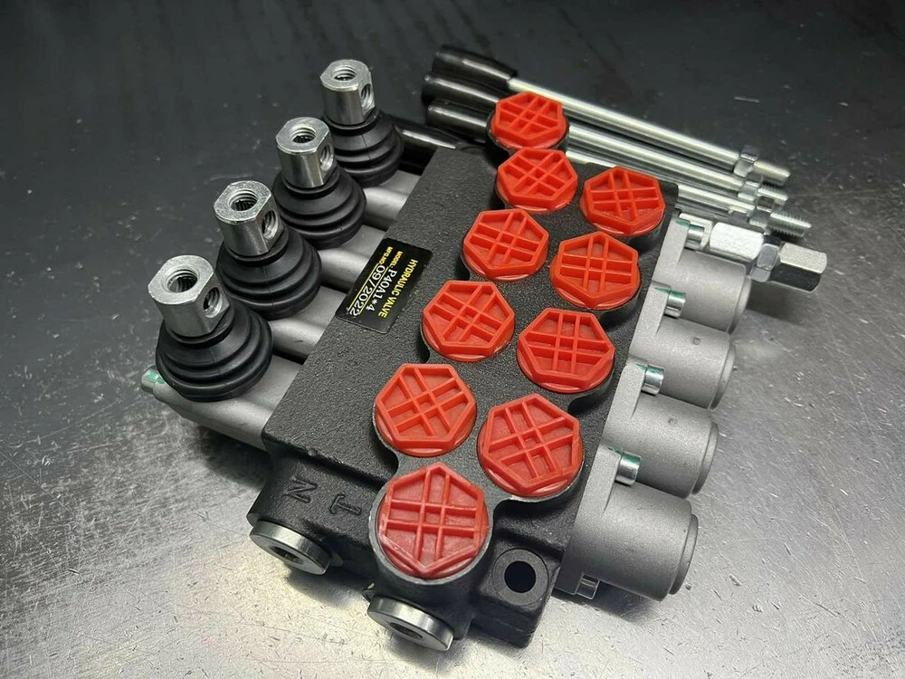 Гидрораспределители Р40 моноблочные с ручным управлением являются наиболее популярными золотниковыми гидравлическими распределителями на Украинском рынке. Данный гидрораспределитель Р40 на 4 секции, корейского производства с подпружиненными золотниками тип А1, подъем и опускание без фиксации, так же можно дополнительно установить плавающее положение, фиксацию, троса, джойстики.