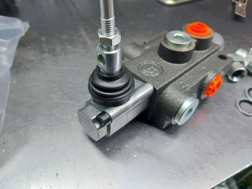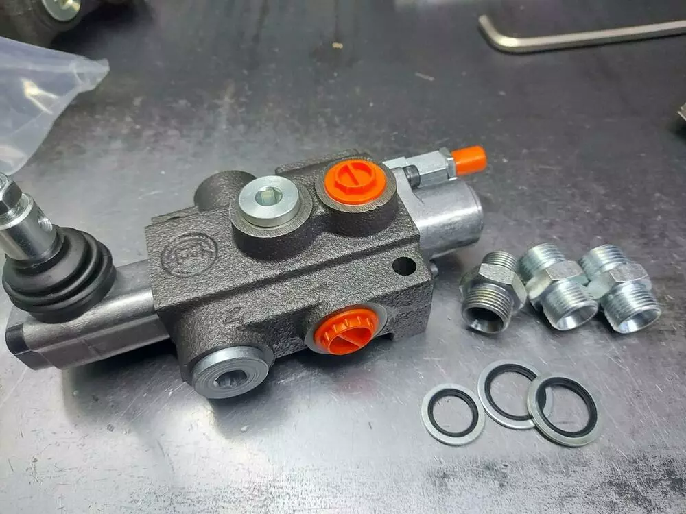 2. Гидрораспределитель с золотником одностороннего действия ( заглушен один из каналов с завода, в распределителе стоит специальный золотник для работы с цилиндрами одностороннего действия) таким образом, подходит 3 шланга к гидрораспределителю, нет необходимости выводить дополнительно РВД из канала А или В на слив.