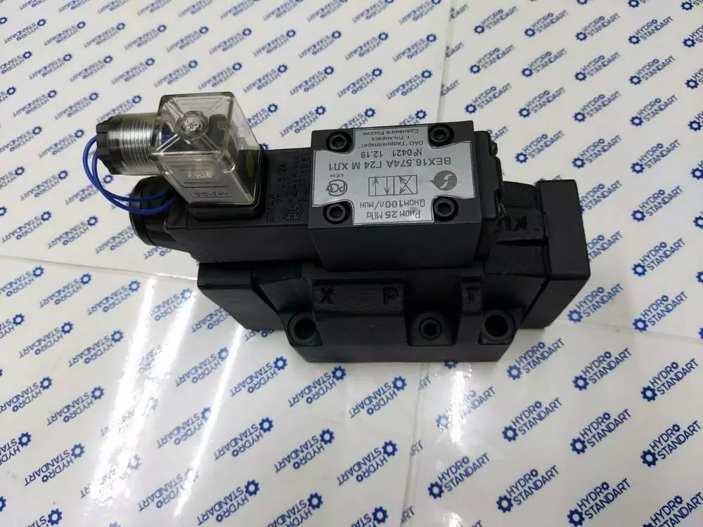 Переключение положения золотника происходит с помощью управляющего элемента – пилота. В 2-х позиционных распределителях с электрогидравлическим управлением ВЕХ16.574 устанавливается пилот ВЕ6.574.