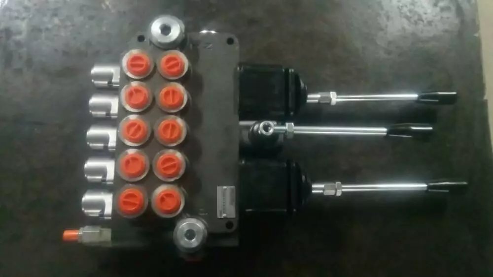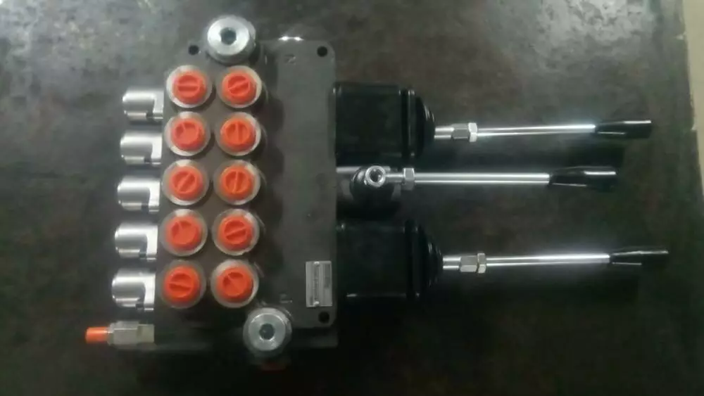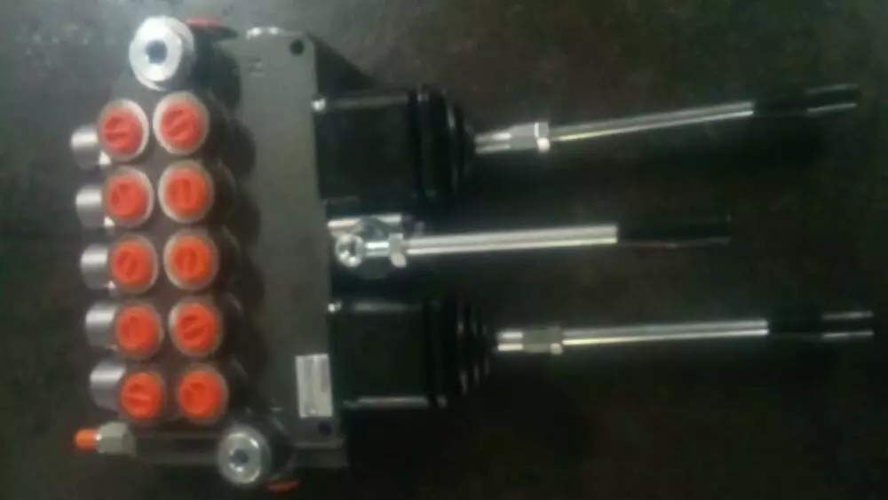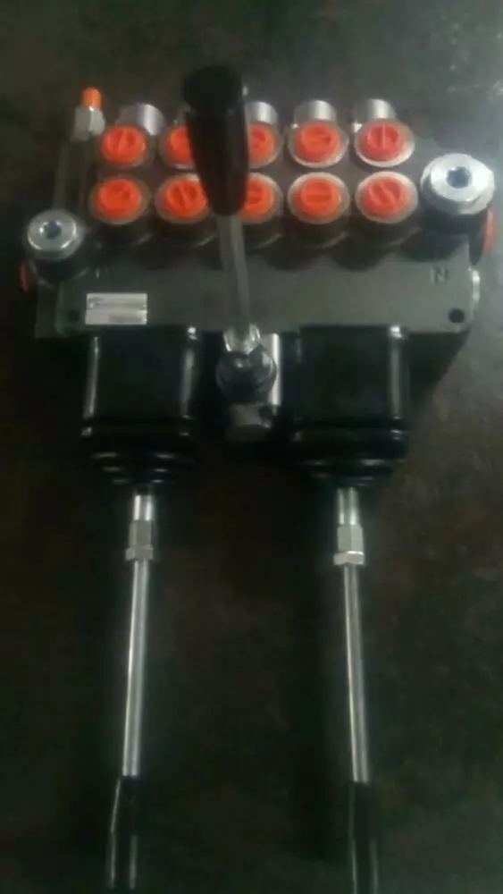 Гідророзподільник 5Р40 шестисекционный моноблочний імпортний виробництва Badestnost, Болгарія з 2 4 координатними джойстиками з номінальною пропускною спроможністю від 40 л/хв. Можливість управління 2 секціями одним джойстиком : Вгору, вниз - управління 1 секцією ; вправо, вліво - управління 2 секцією.У базовій комплектації є вбудований клапан тиску від 0 до 320 Бар, пружинне повернення ручки в нейтральне положення, як додаткова опція можлива установка фіксації ручки і плаваючого положення, електрокерування, гидроуправление, пневмоуправління, троссиковое управління і механічний джойстик 4-х координатний для зручності використання. Різьба 1/2` (керуючі канали) ― 3/4`(подача і слив)