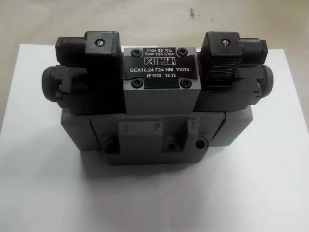 Гідророзподільник ВЕХ16.34 з двостороннім електромагнітним керуваннямГідророзподільники ВЕХ-16.34 золотисті чотирилінійні з двостороннім електрогідравлічним керуванням, з умовним проходом 16 мм призначені для керування (зміни напрямку або пуску й зупинки потоками робочих рідин у гідравлічних системах.
