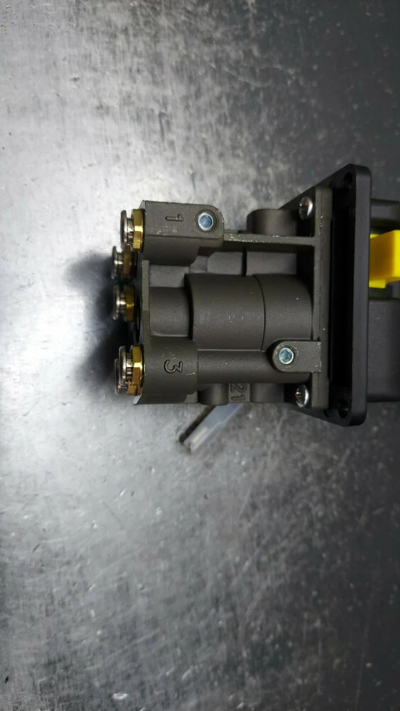Джойстик пневматический трехпозиционный с кнопкой. Кран подъема кузова