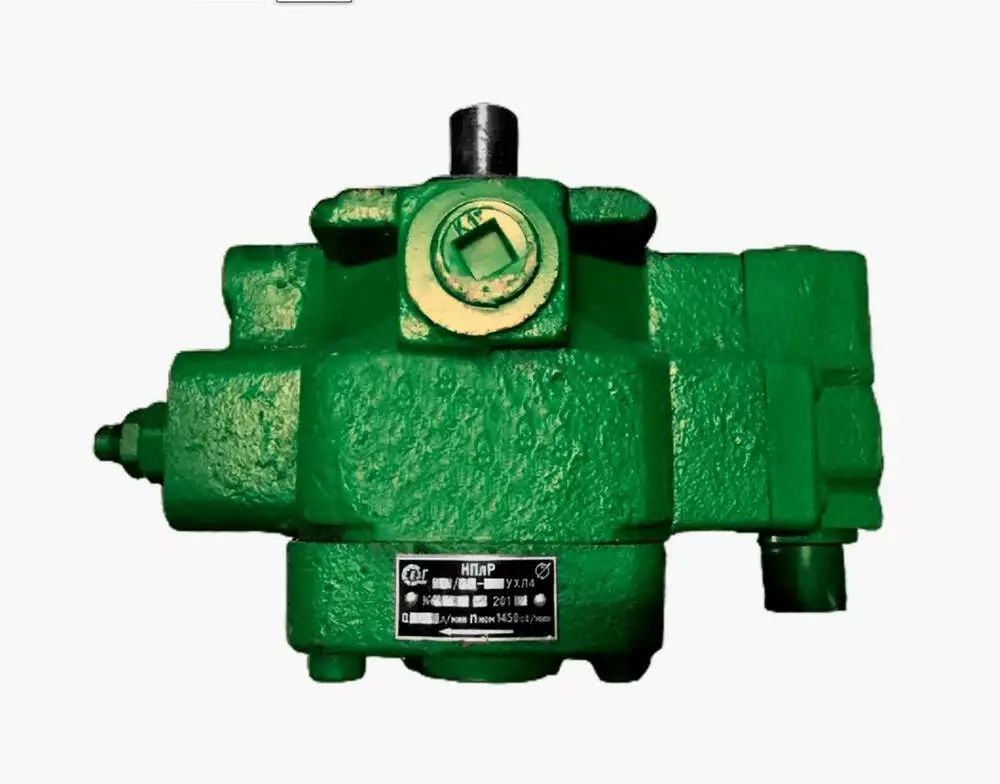 Купить однопоточный пластинчатый регулируемый насос НПлР 80/16, НПлР-80/16 по лучшей цене от поставщика гидравлики №1 в УкраинеНПлР80/16 — пластинчатый однопоточный гидравлический насос с регулируемым потоком рабочей жидкости. Его используют в гидросистемах металлорежущих станков и других машин для нагнетания гидравлической жидкости в узлы и механизмы, где требуется регулируемая по величине подача и номинальное давление 16 МПа. Гидронасос изменяет подачу минерального масла от номинальной до нуля при достижении в системе давления, равного давлению настройки клапана. Настройка клапана регулятора давления механическая. Также для уменьшения величины номинальной подачи предусмотрено механическое изменение рабочего объема. Модель имеет рабочий объем – 80 см3, номинальную подачу – 97 л/мин, номинальную частоту вращения – 1450 об/мин.