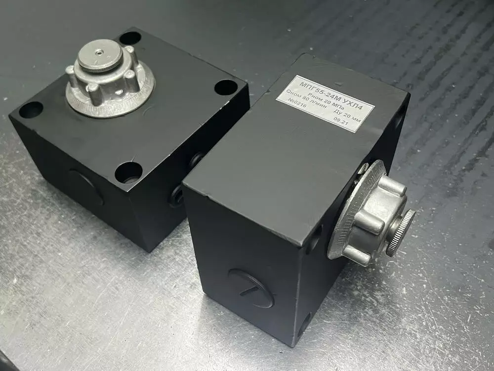 Регулятори витрати МПГ 55-2 випускаються на ном. тиск 20 МПа та 32 МПа. Залежно від номінальної витрати робочої рідини регулятори витрати МПГ55-2 бувають трьох вироблених: