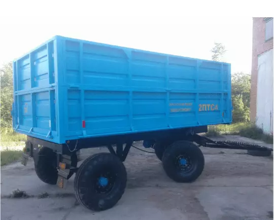 Прицеп тракторный самосвальный ПТС-4Прицеп тракторный самосвальный предназначен для транспортировки различных сыпучих, строительных отходов, бочек и др. Прицеп может быть использован во всех климатических зонах страны. Агрегатируется с тракторами класса от 1.4 и выше.