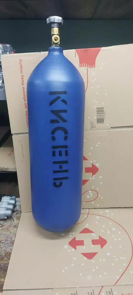 Балон кисневий, об'ємом 20 літрів призначений для зберігання та транспортування кисню. Балон забарвлюється емальовою фарбою синього кольору та маркується написом "КИСЛОРОД".