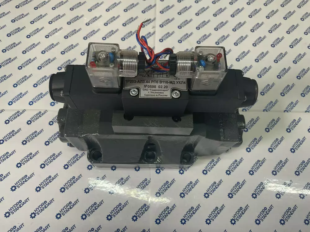Перемикання положення золотника відбувається за допомогою керівного елемента — пілота. У трипозиційних розподільників з електрогідравлічним керуванням 1Р203 встановлюється пілот ВЕ6.34. Рвиробляють від мережі постійного або змінного струму з напругою 12 В, 24 В, 110 В, 220 В.
