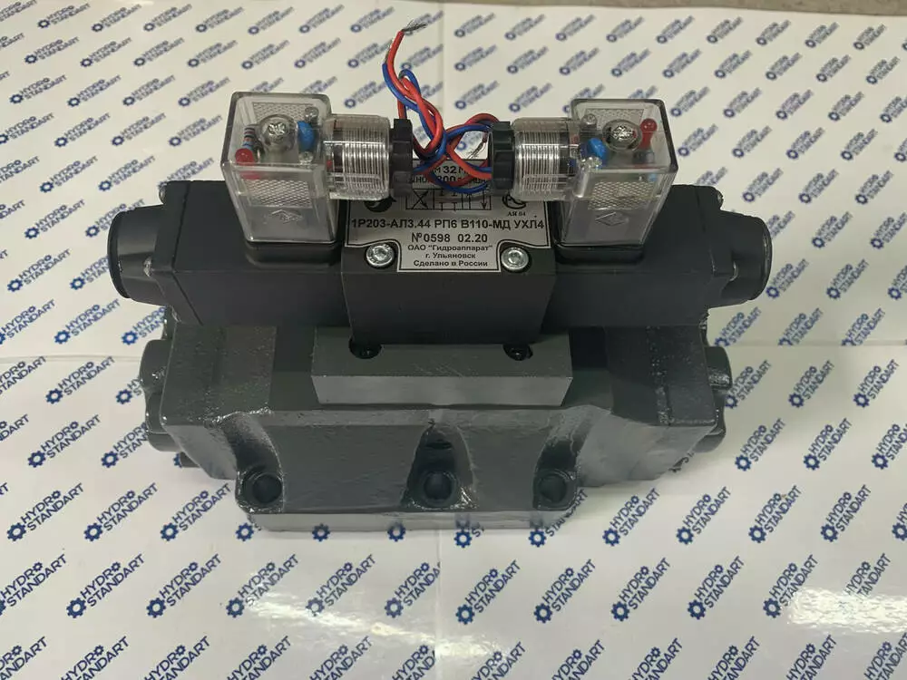 Перемикання положення золотника відбувається за допомогою керівного елемента — пілота. У трипозиційних розподільників з електрогідравлічним керуванням 1Р203 встановлюється пілот ВЕ6.34. Рвиробляють від мережі постійного або змінного струму з напругою 12 В, 24 В, 110 В, 220 В.