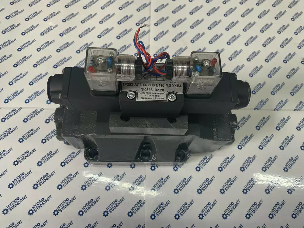 Перемикання положення золотника відбувається за допомогою керівного елемента — пілота. У трипозиційних розподільників з електрогідравлічним керуванням 1Р203 встановлюється пілот ВЕ6.34. Рвиробляють від мережі постійного або змінного струму з напругою 12 В, 24 В, 110 В, 220 В.