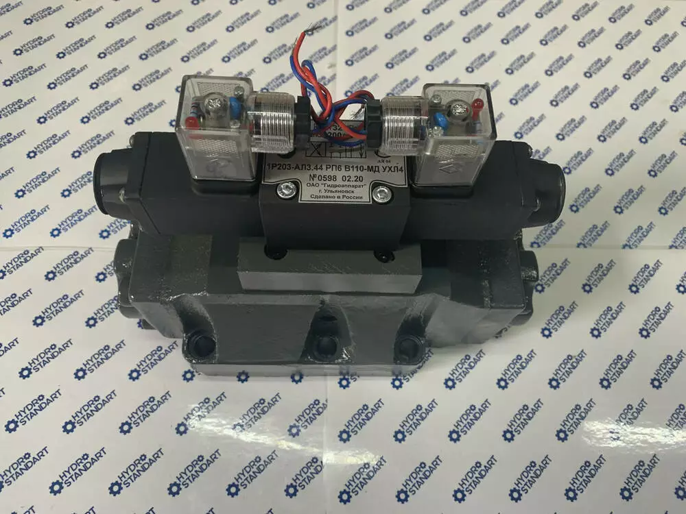 Перемикання положення золотника відбувається за допомогою керівного елемента — пілота. У трипозиційних розподільників з електрогідравлічним керуванням 1Р203 встановлюється пілот ВЕ6.34. Рвиробляють від мережі постійного або змінного струму з напругою 12 В, 24 В, 110 В, 220 В.