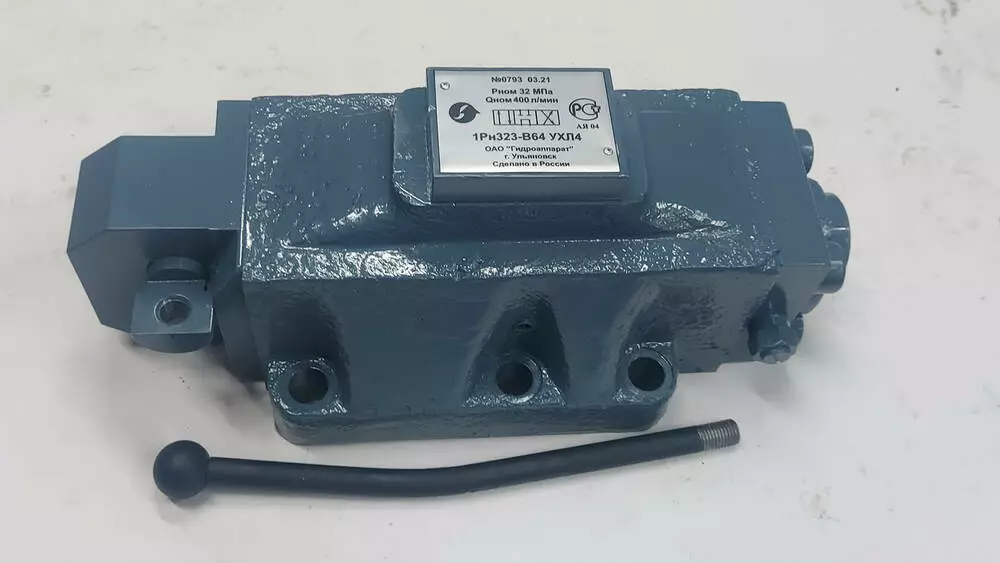 Гідророзподільники 1Рн323ФВ44 з умовним проходом 32 мм, золотисті, чотирилінійні, з безпосереднім (ручним) керуванням із фіксацією призначені для зміни напрямку або пуску та зупинки потоку робочої рідини в гідравлічних системах промислового обладнання.