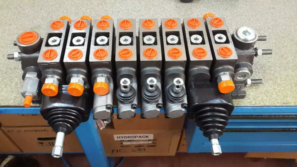 Гідророзподільник 6Р40 шестисекционный моноблочний імпортний виробництва провідних турецьких заводу гідравліки Hidros, GMS Hydraulics з 3 механічними джойстиками 4 координатними з пропускною здатністю від 40-70 л/хв. Можливість управління 2 секціями одним джойстиком : Вгору, вниз - управління 1 секцією ; вправо, вліво - управління 2 секцією.У базовій комплектації є вбудований клапан тиску від 0 до 320 Бар, пружинне повернення ручки в нейтральне положення, як додаткова опція можлива установка фіксації ручки і плаваючого положення, електрокерування, гидроуправление, пневмоуправління, троссиковое управління і механічний джойстик 4-х координатний для зручності використання. Різьба 1/2` (керуючі канали) ― 3/4`(подача і слив)