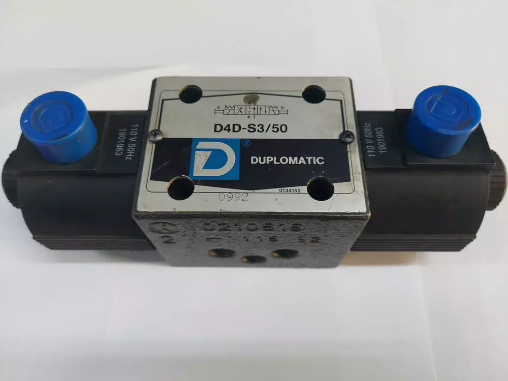 Гідравлічні розподілники Duplomatic D4D-S3/50 (аналог 4WE10J, ВЕ10.34) призначені для керування й зміни напрямку або пуску та зупинки потоками робочих рідин у гідравлічних системах. Перемикання положення золотника відбувається за допомогою керівного елемента — електромагнітного (привода електромагнітного).