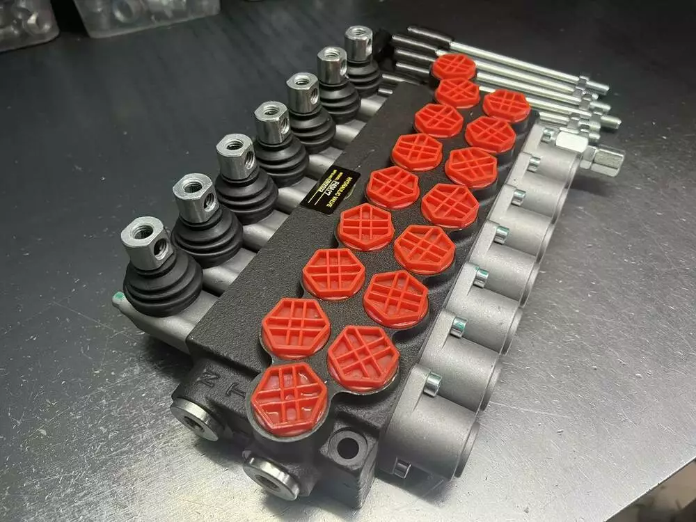 Гідророзподільники Р40 моноблокові з ручним керуванням є найпопулярнішими золотистими гідравлічними розподільниками на українському ринку. Цей гідророзподільник Р40 на 6 секцій, корейського виробництва з підпружиненими золотниками тип А1, підйом і опускання без фіксації, так само можна додатково встановити плавальне положення, фіксацію, троса, джойстики.