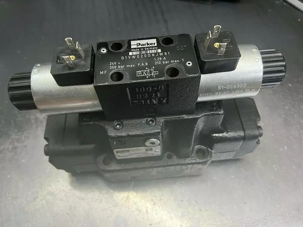 Гідророзподільник Parker D41VW020D1NJW91 з двостороннім електромагнітним керуванням за найкращою ціною від постачальника гідравліки No1 в УкраїніГідророзподільник Parker D41VW020D1NJW91 золотисті чотирилінійні з двостороннім електрогідравлічним керуванням, з умовним проходом 16 мм призначені для керування (зміни напрямку або пуску й зупинки потоками робочих рідин у гідравлічних системах.