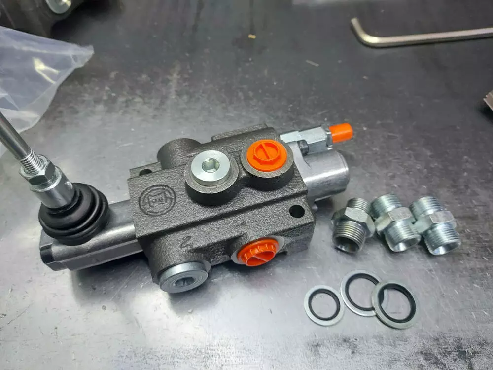 2. Гідророзподільник з золотником односторонньої дії ( заглушений один з каналів з заводу, в розподільнику варто спеціальний золотник для роботи з циліндрами односторонньої дії) таким чином, підходить 3 шланга до гідророзподілювача, немає необхідності виводити додатково РВТ з каналу А чи на злив.