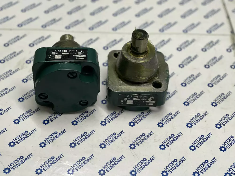 Насос С12-5М-4 — гідравлічний пластинчастий мастильний насос. Модернізований нерегульований гідронасос для змащення одноразової дії з циліндричною посадкою. Подає мінеральну оливу постійною за величиною і напрямком потоком у мастильні системи промислових верстатів, машин і механізмів. Продуктивність — 5 літрів за хвилину, тиск — 0,25 МПа. Вага — 2,5 кг. Напрямок обертання вала — правий (за годинниковою стрілкою з боку приводу).Виготовлення за ТУ 2.053.1764-85. Виробник — Елецький завод Гідропривод. Встановлений аналог — лопатний С12-53 з конічною посадкою. Модифікації — насос мастила С12-4М-4 з реверсивним обертанням.