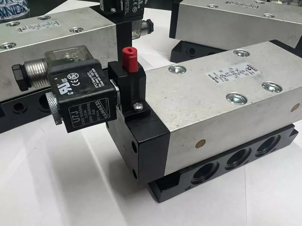 Золотниковий розподілювач Camozzi 953-000-P16-23IL з однобічним електропневматичним керуванням,5/2 моностабільний із пневмоповоротом і ручним дублюванням — прапорець. Монтаж на плиті розміром 3. Постачається без котушки та роз'єму (замовляється окремо).