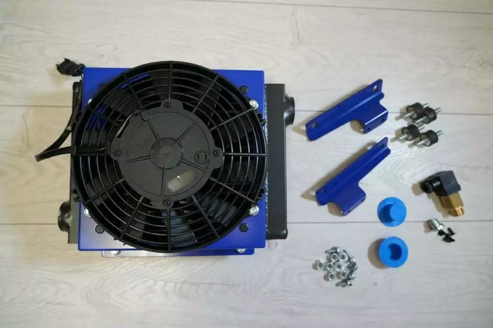 Повітряно-оливні теплообмінники використовуються для охолодження гідравлічної оливи, що циркулює в гідросистемі. Якщо купити теплообмінник цього типу, то ви отримаєте пристрій, сумісний із великим діапазоном робочих рідин:
